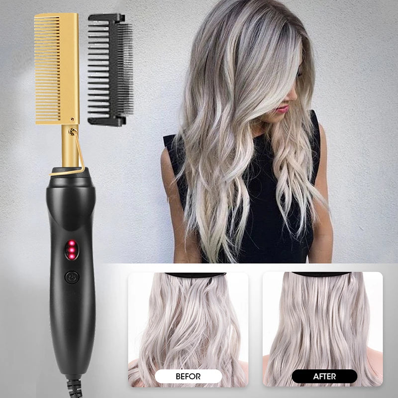 Professional Electric Ceramic Ionic Hair Straighten Straightener Brush Hot Comb Pressing Electric Hot Comb Hair Straightener
